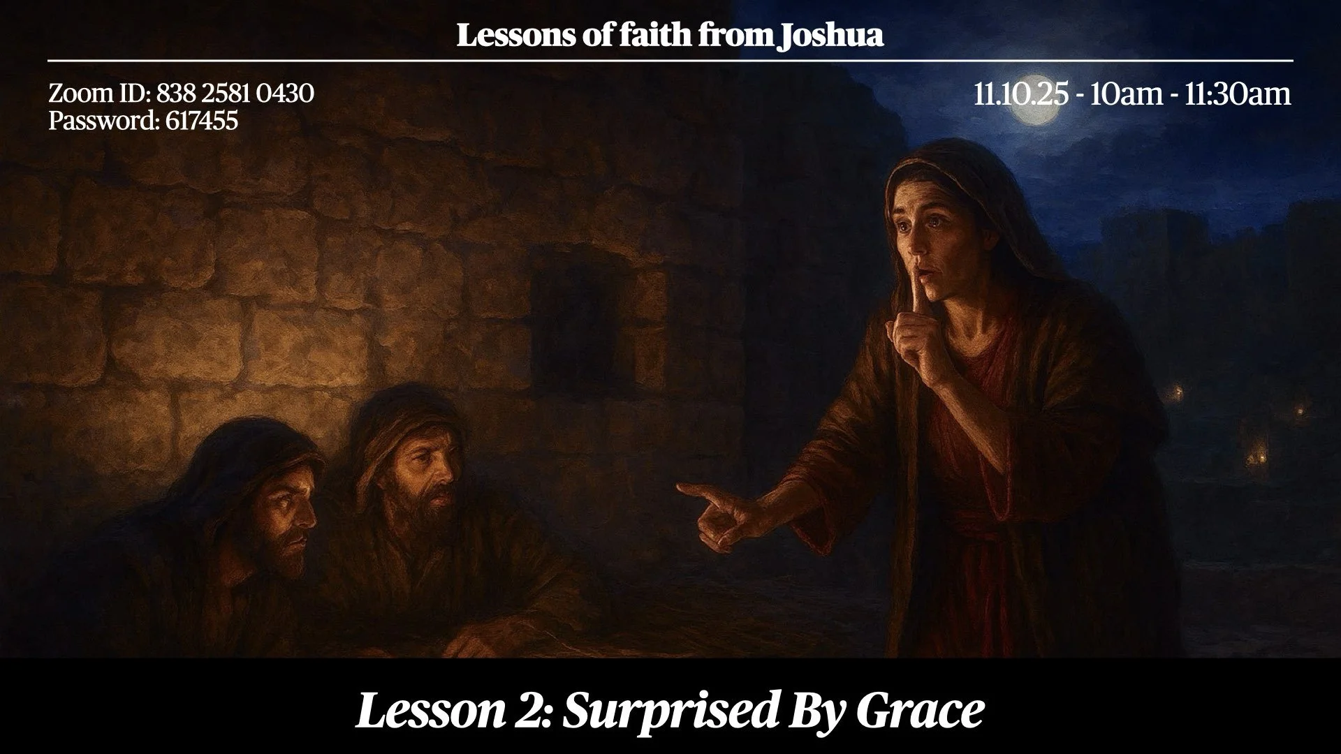 Join us this week in Sabbath School as we continue the theme for the quarter: ‘Lessons of faith from Joshua ’. This week’s lesson is entitled: ‘Surprised by Grace’. Our Divine service will follow at 11: 30. Click Here to join both services.