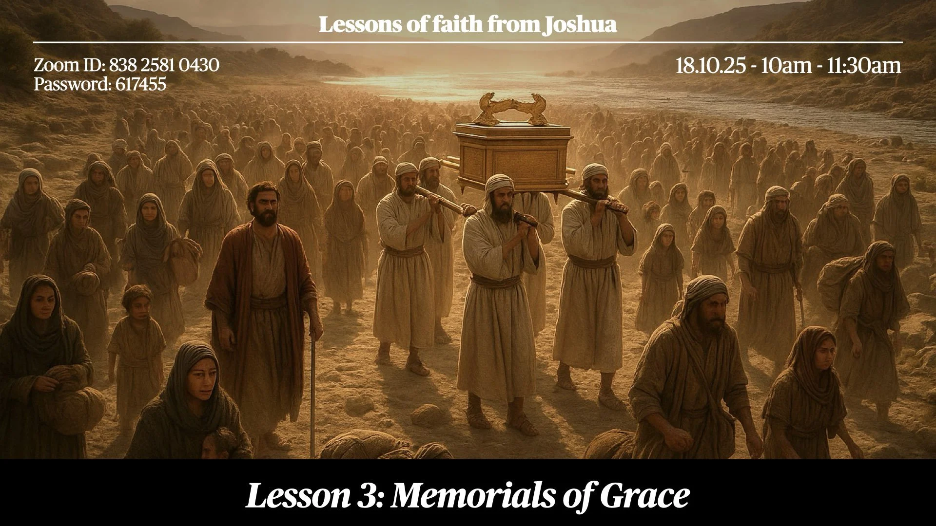 Join us this week in Sabbath School as we continue the theme for the quarter: ‘Lessons of faith from Joshua ’. This week’s lesson is entitled: ‘Memorials of Grace’. Our Divine service will follow at 11: 30. Click Here to join both services.